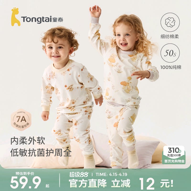 丽婴房【安心棉】26春新男女童宝宝纯棉a类睡衣秋衣秋裤内衣套装