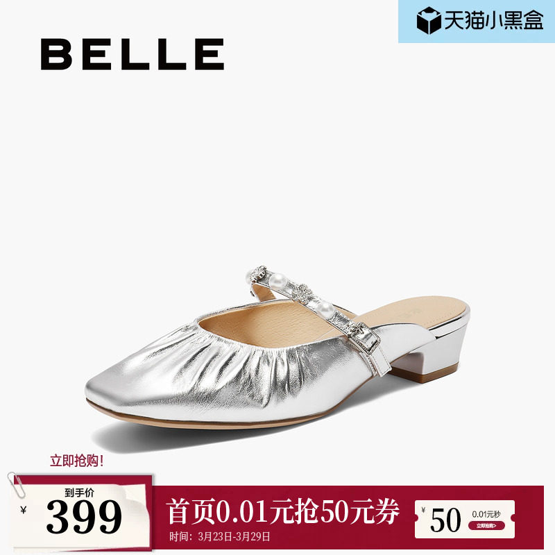 百丽女鞋子穆勒单鞋女夏季新款平跟可外穿懒人拖鞋B2620BH5