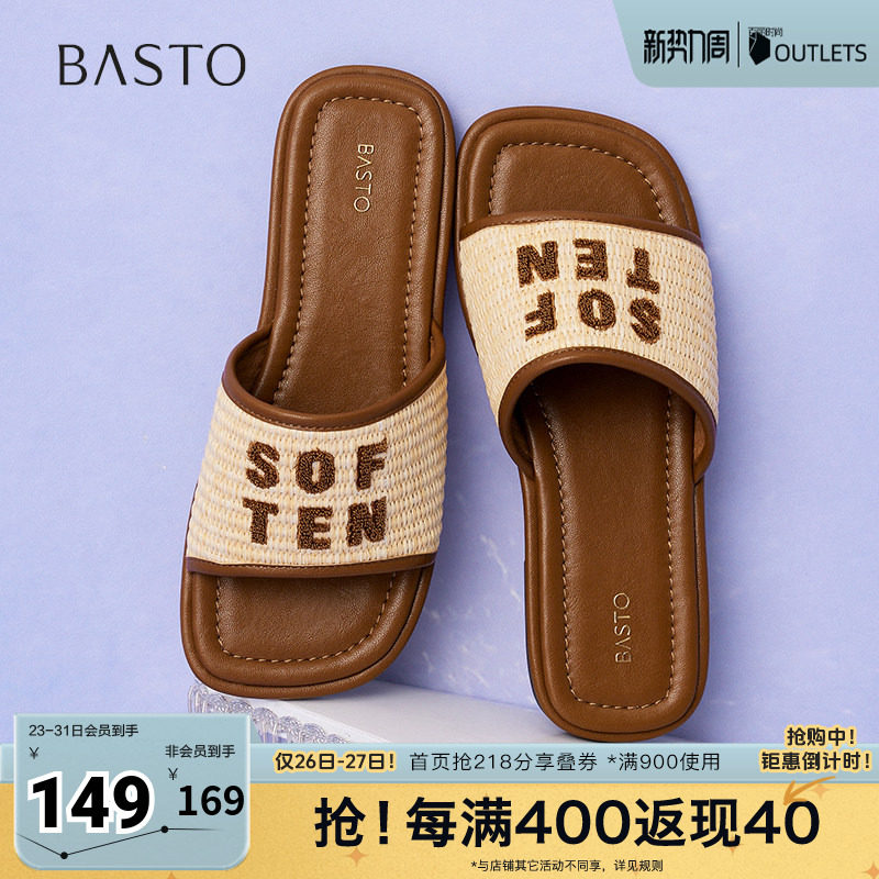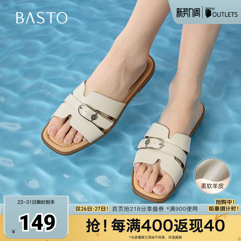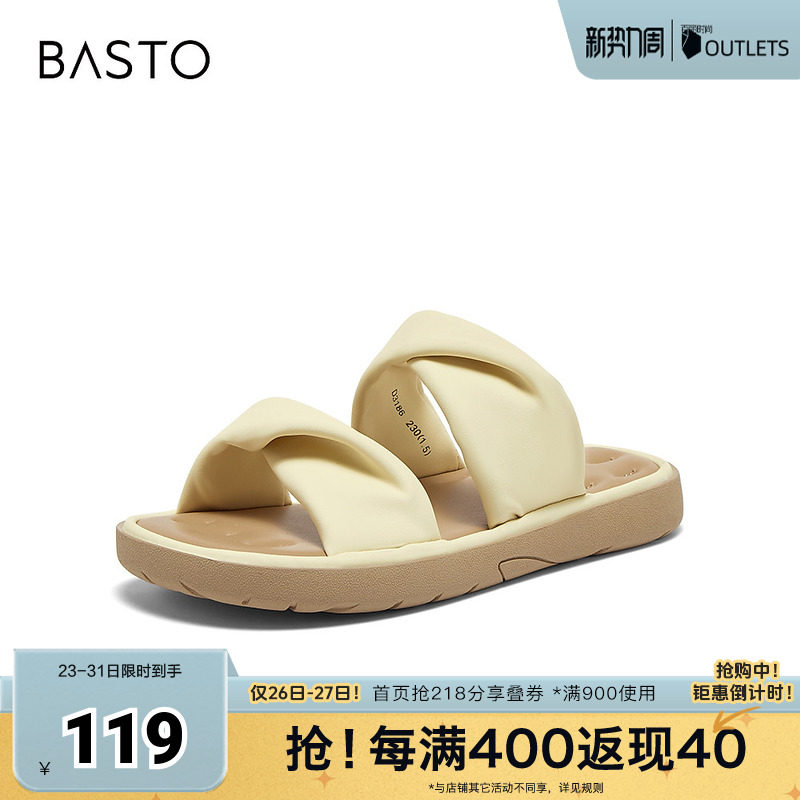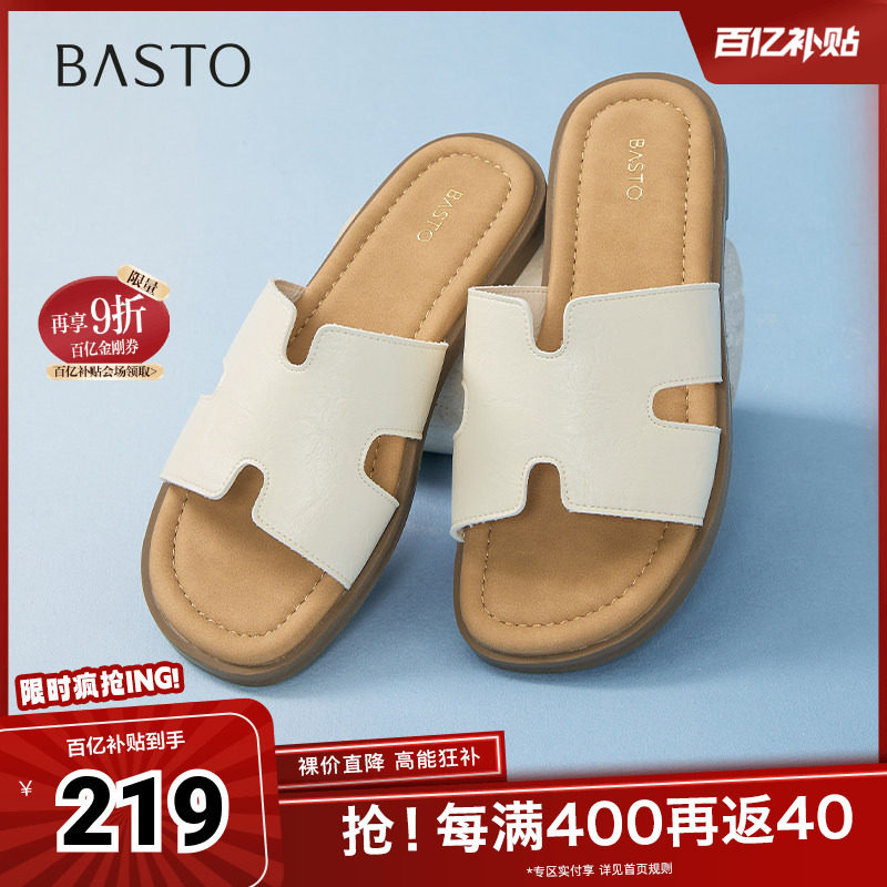 【烈儿321直播盛典】百思图商场同款时尚休闲穆勒鞋平跟女拖鞋Z