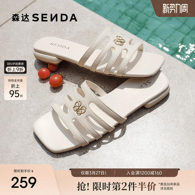 森达凉拖鞋女款夏新居家简约休闲方头气质平跟凉鞋ZTG35BT5