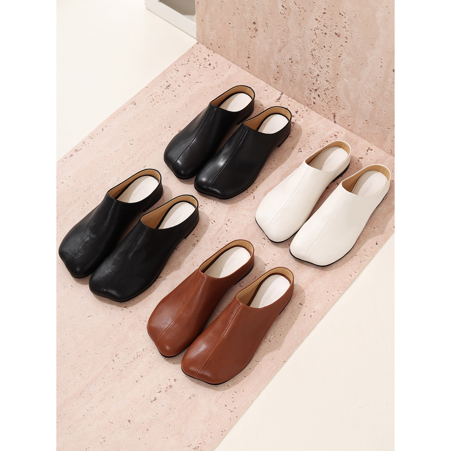 InkingPot彭姐 方头包头拖鞋女外穿真皮舒适平跟单鞋2026春夏新款