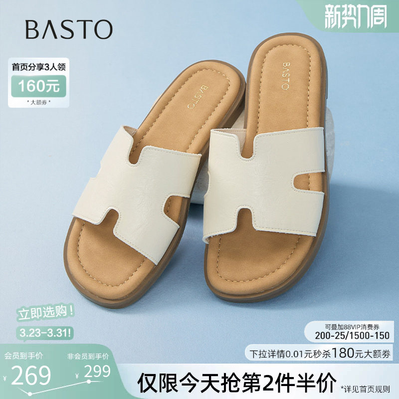 百思图夏季新款商场同款时尚休闲百搭穆勒鞋平跟女拖鞋VZM12BH5