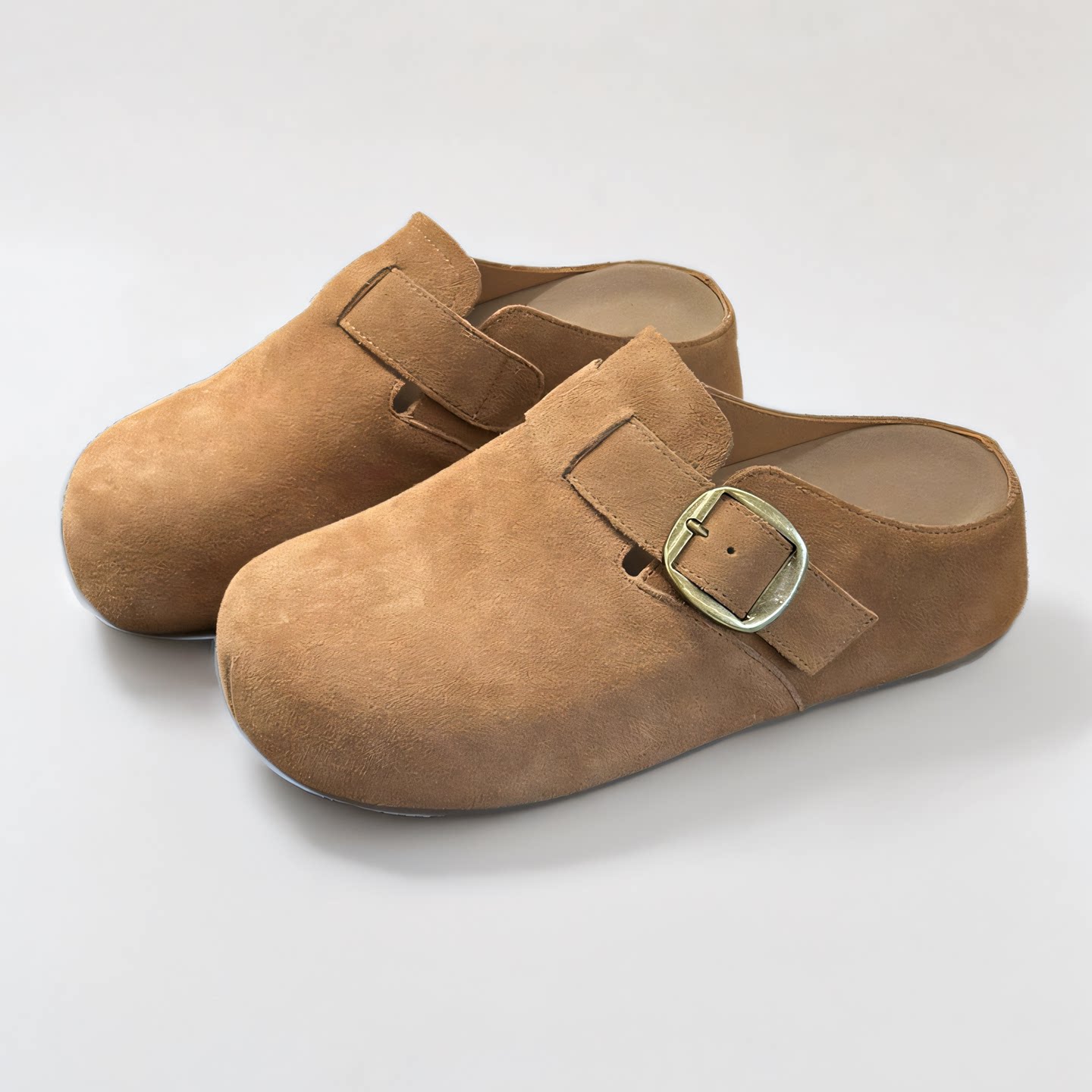 复古包头拖鞋女平跟一脚蹬女鞋搭扣防滑勃肯鞋舒适外穿真皮懒人鞋