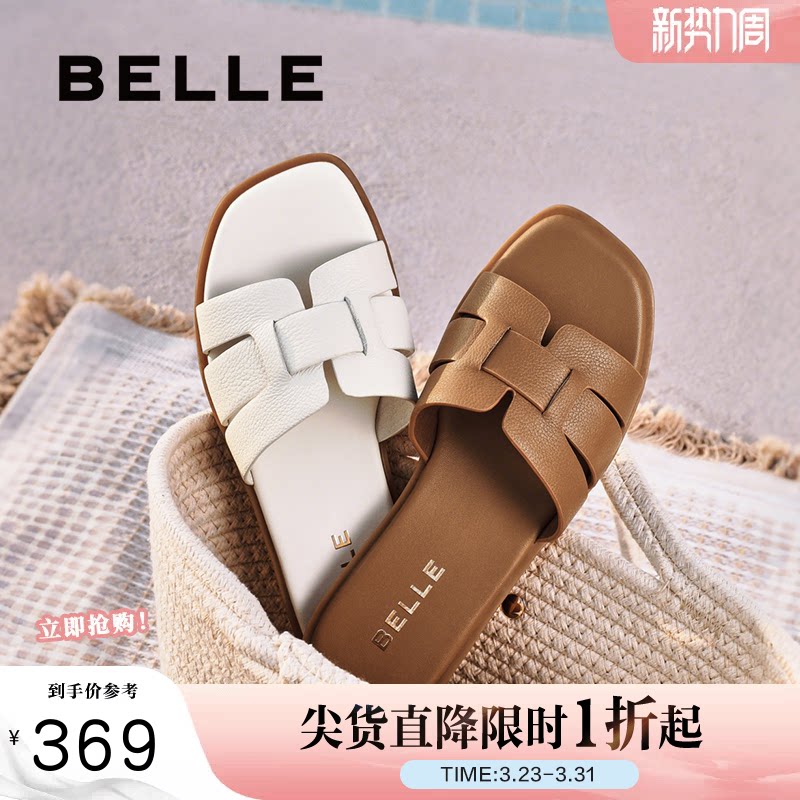 百丽拖鞋女新款夏季可外穿鞋子马皮平跟海边度假沙滩鞋D6F1DBT5预
