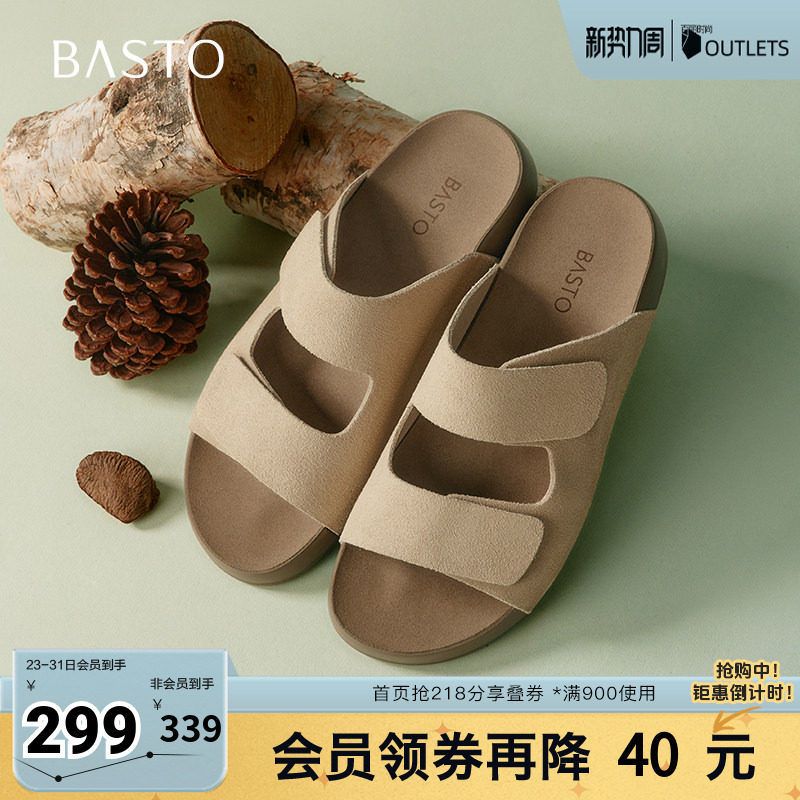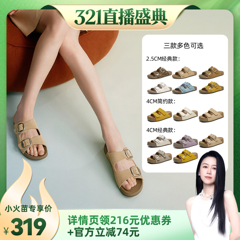 【烈儿321直播盛典】百思图商场同款复古休闲勃肯鞋平跟女拖鞋Z
