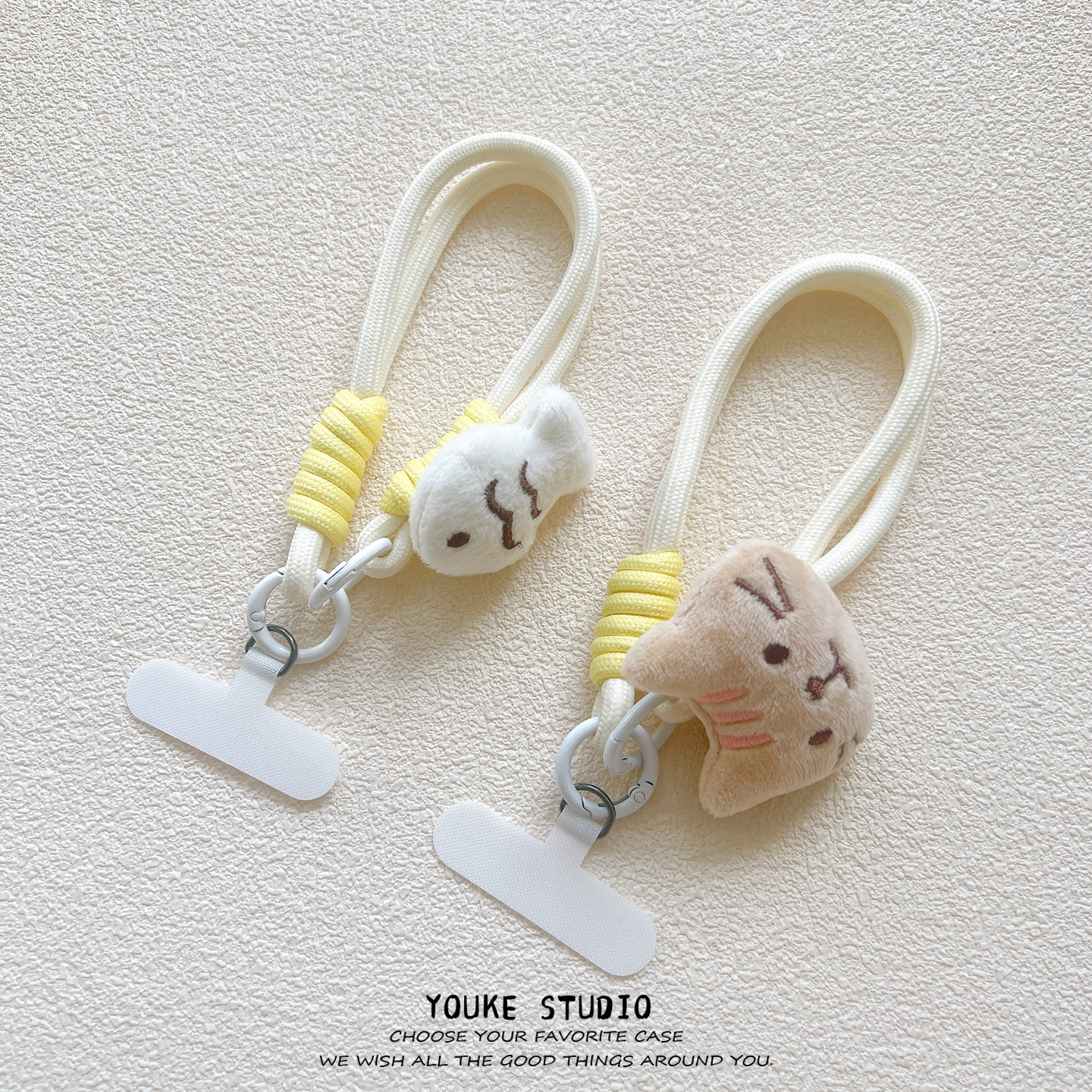 可爱毛绒猫咪小鱼尼龙挂绳手机壳手提短绳带夹片ccd钥匙扣防丢女
