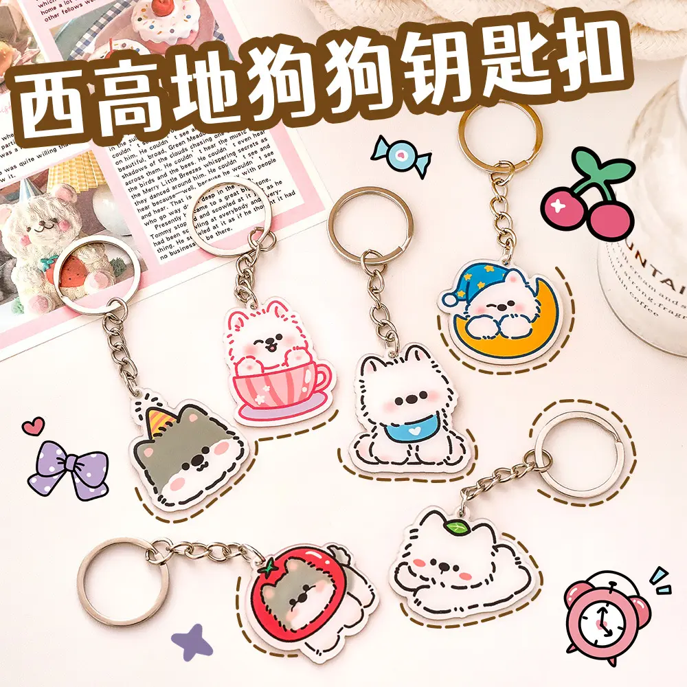ins可爱西高地钥匙扣 学生高颜值背包挂件卡通亚克力狗狗钥匙圈
