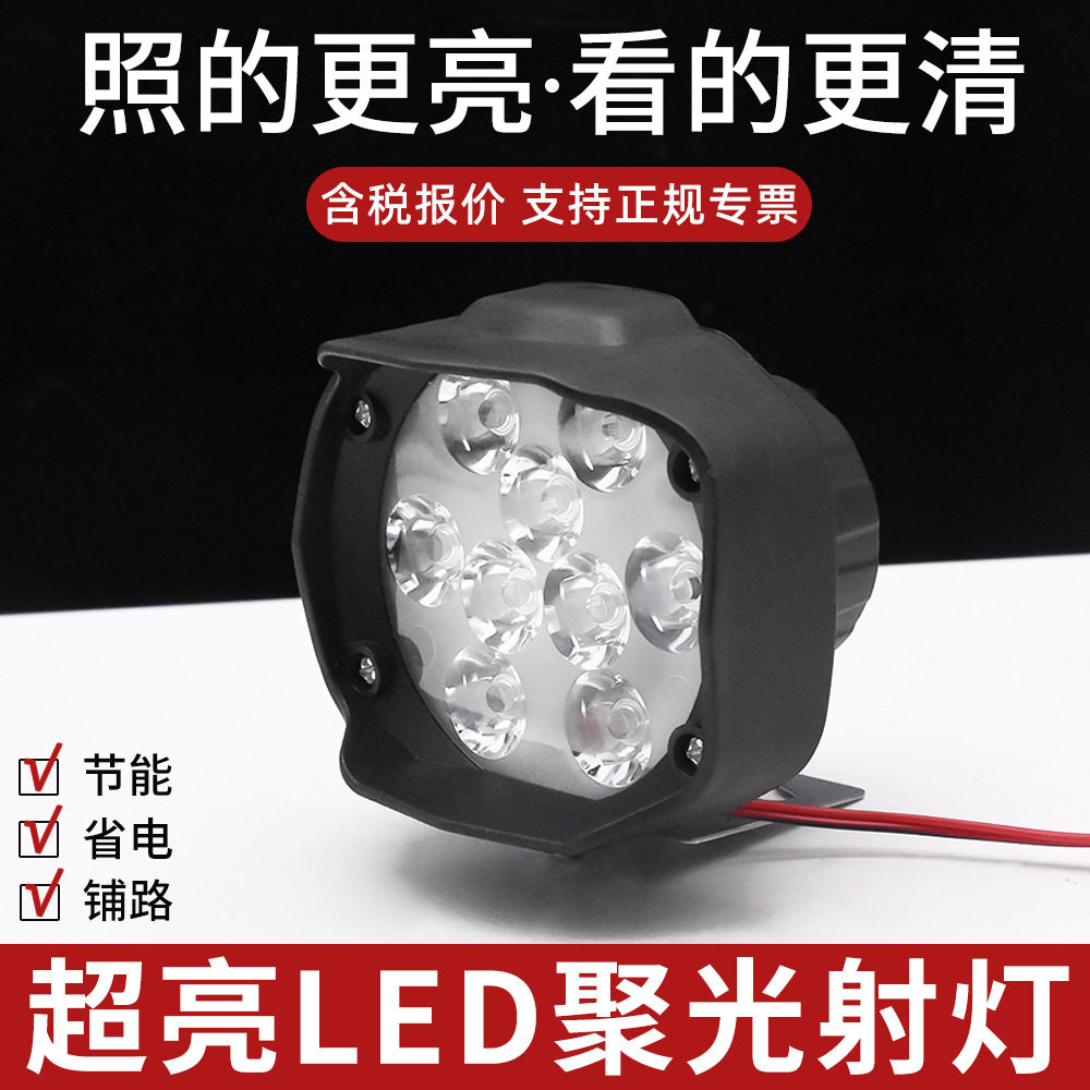 电动车灯摩托车超亮LED大灯三轮电瓶车改装外置12V强光射灯铺路灯