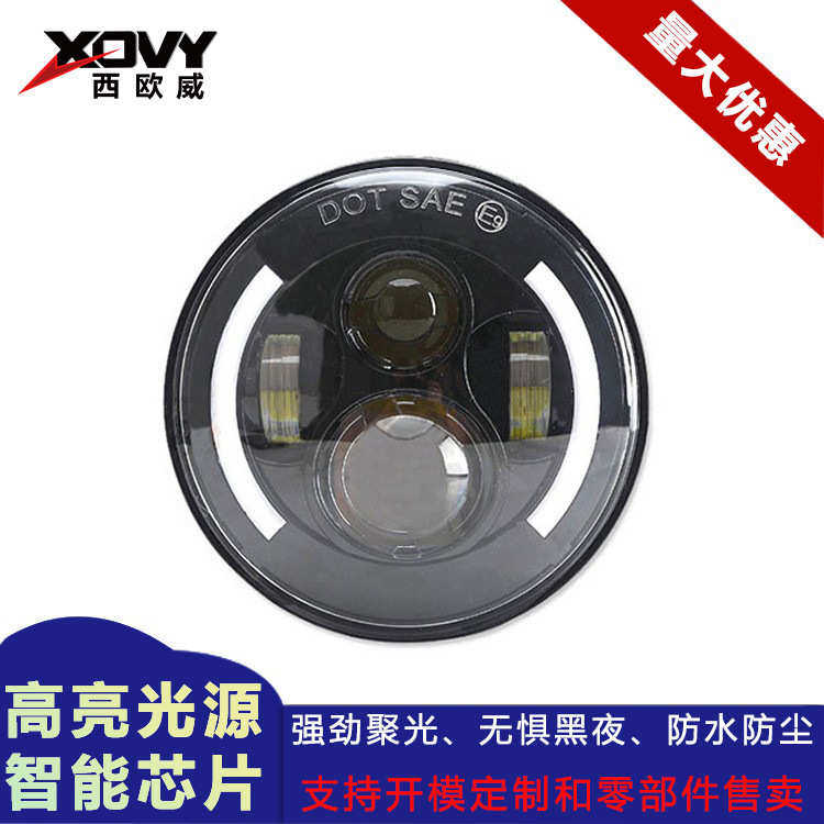 哈雷牧马人7寸4珠led大灯 摩托车改装前大灯 三代天使眼带日行灯