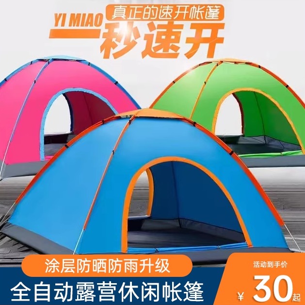 自动帐篷户外黑胶防晒加厚遮光防蚊虫免搭建露营钓鱼沙滩野营海滩