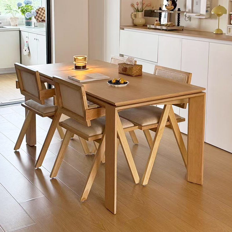 三梦全实木餐桌客厅家用小户型长方形餐桌原木风桌椅组合吃饭桌子