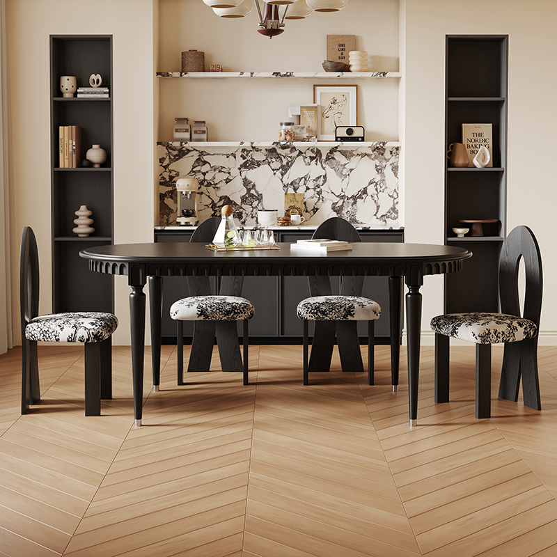法式复古黑色全实木餐桌现代简约小户型中古风椭圆带抽屉吃饭桌子