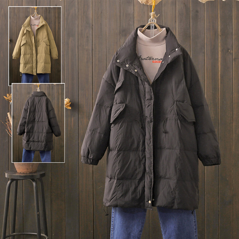 日单品牌中长款轻薄羽绒服立领女秋冬便携大码白鸭绒外套显瘦妈妈