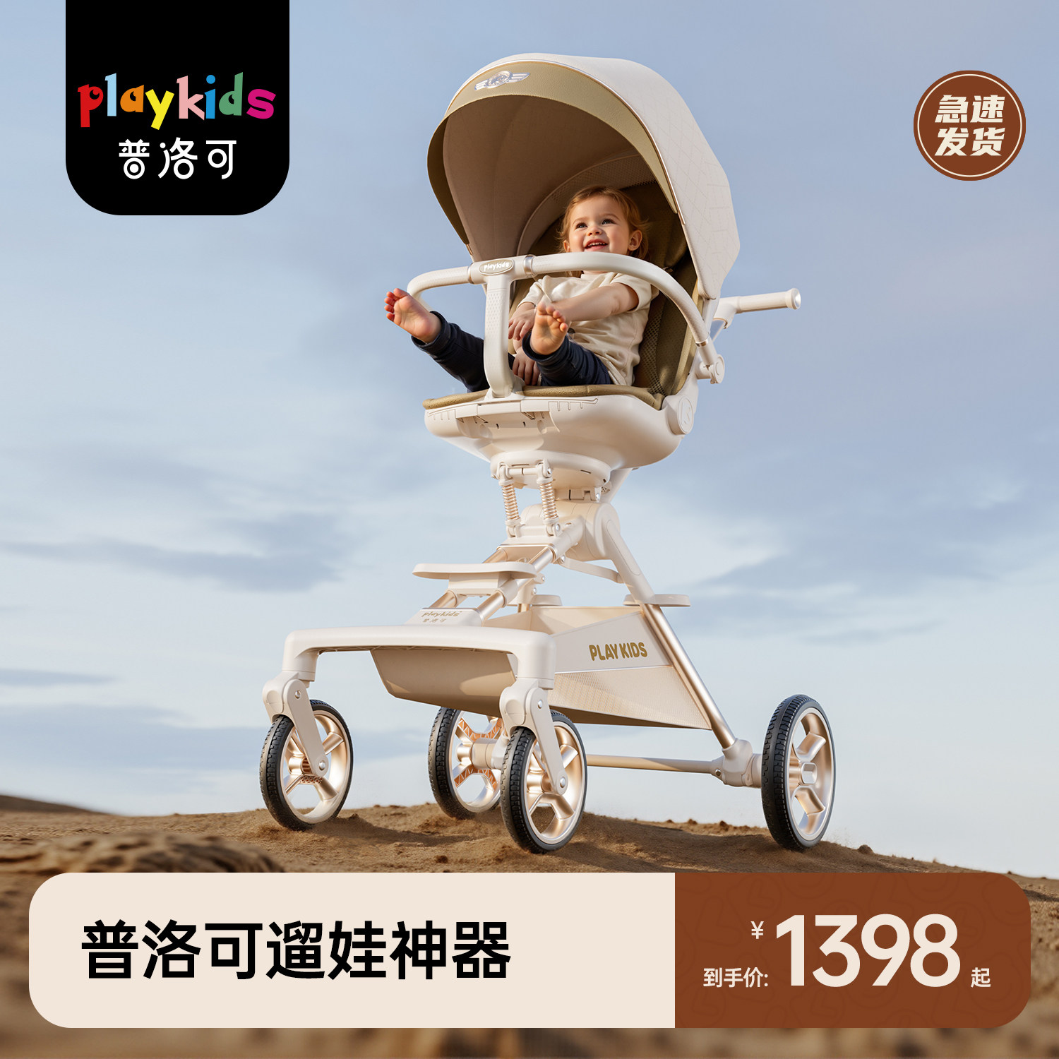 普洛可playkids遛娃神器X6-4轻便折叠可坐躺0-3岁溜娃婴儿车推车