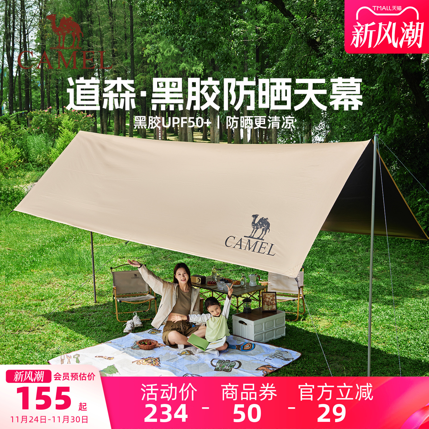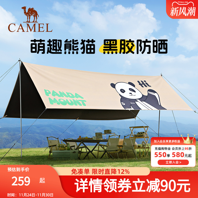 骆驼熊猫联名黑胶天幕遮阳户外野餐露营帐篷懒人速搭2025春夏新款