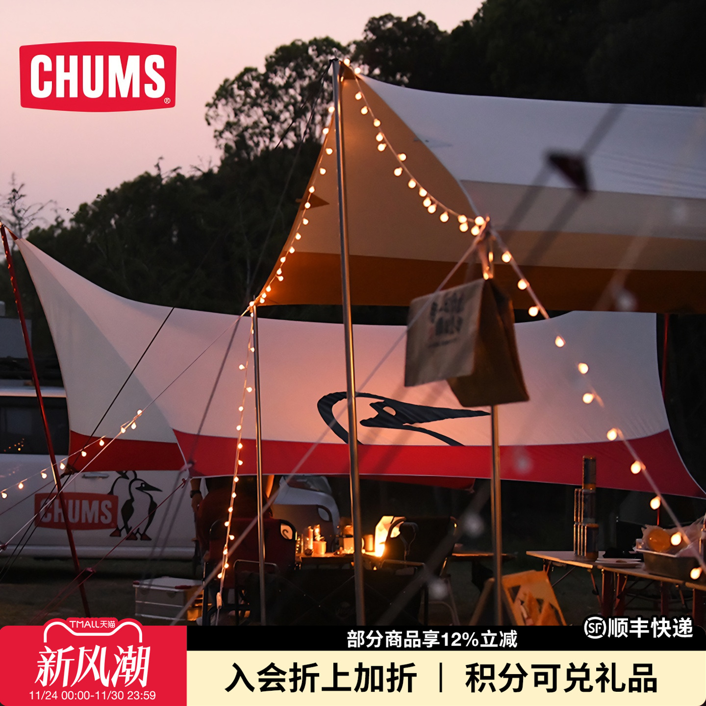 CHUMS洽洽鸟户外露营帐篷天幕棚顶(送天幕杆)春夏CH62-1828