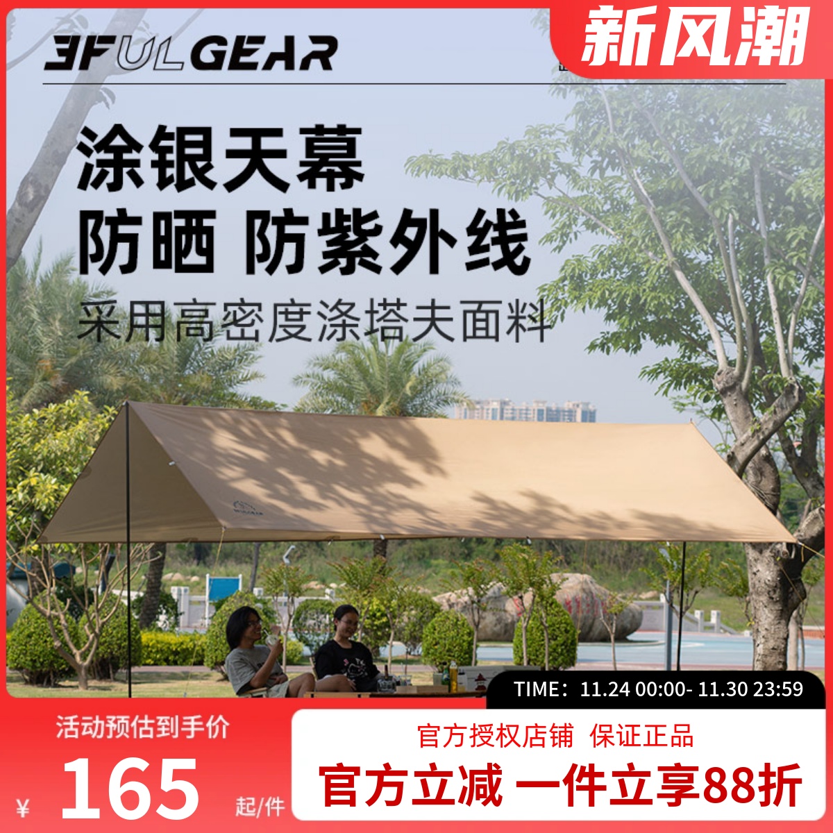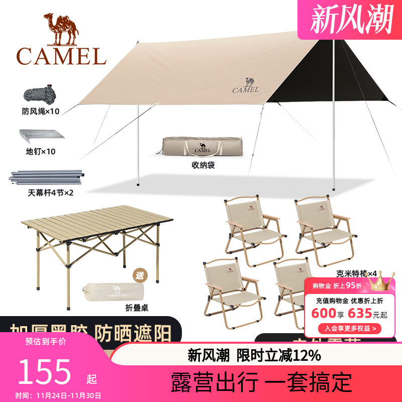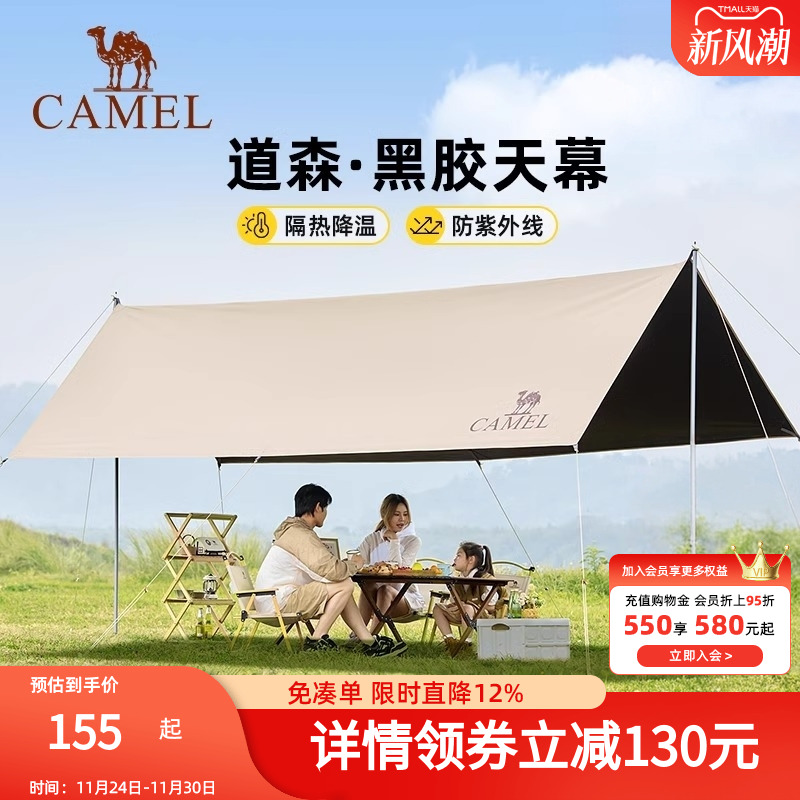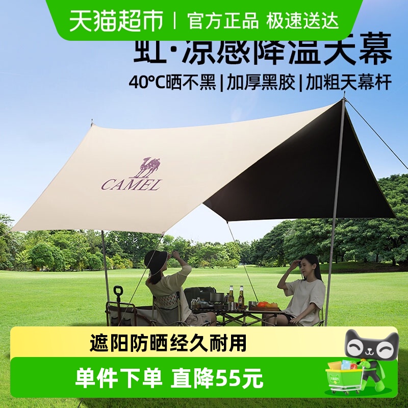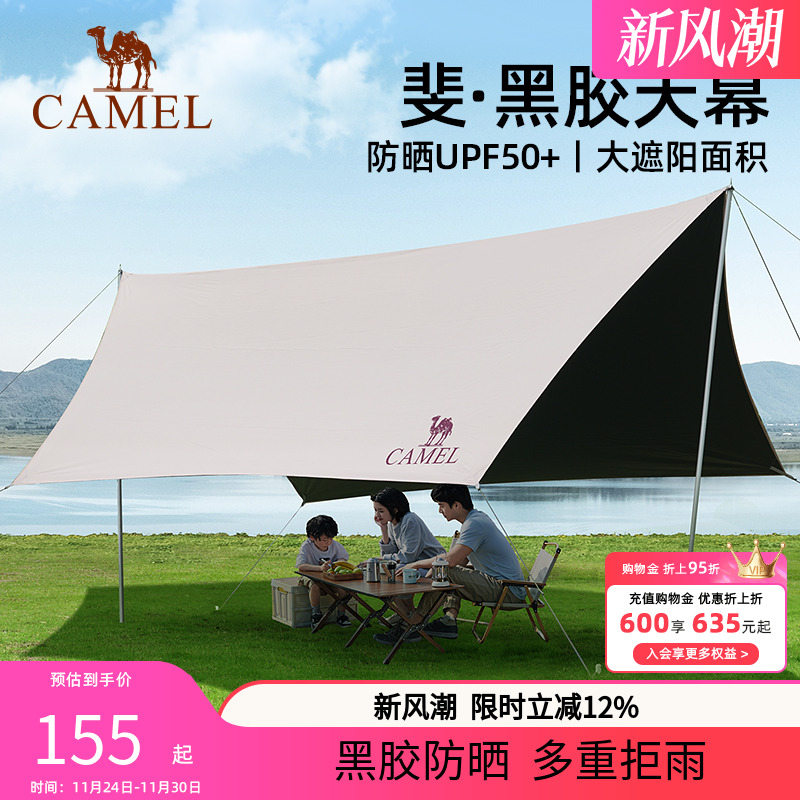 骆驼黑胶天幕户外露营帐篷防雨防晒涂层野营遮阳棚布野外装备全套