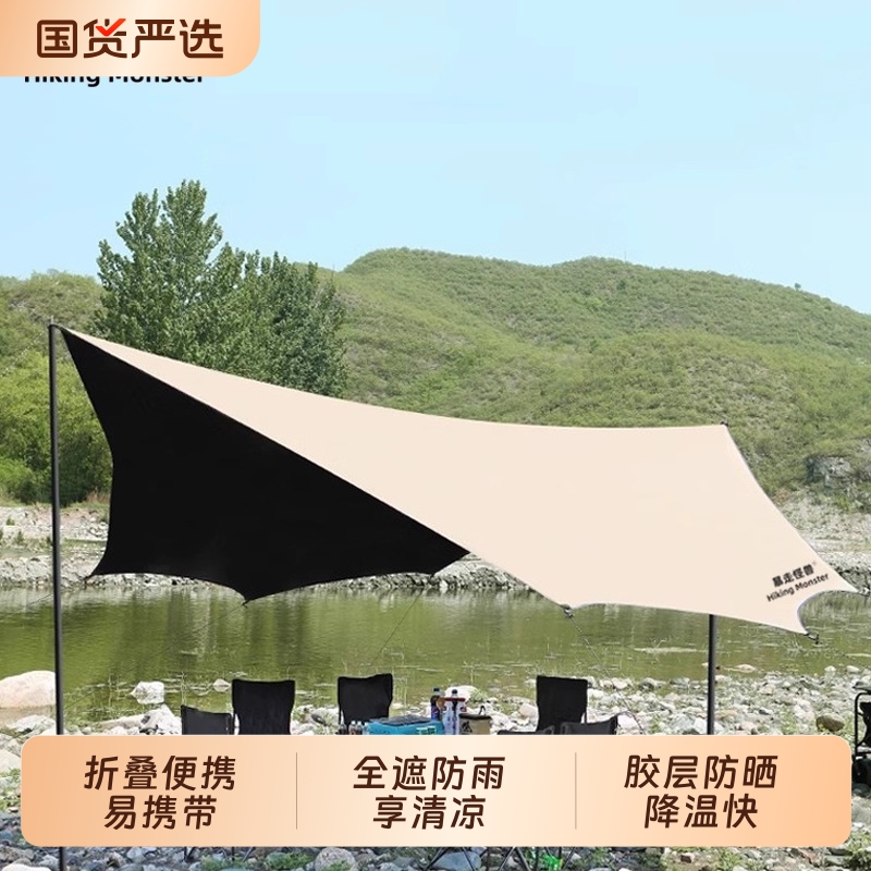 户外大号涂银遮阳棚便携式野外防晒加厚黑胶超轻天幕露营帐篷装备
