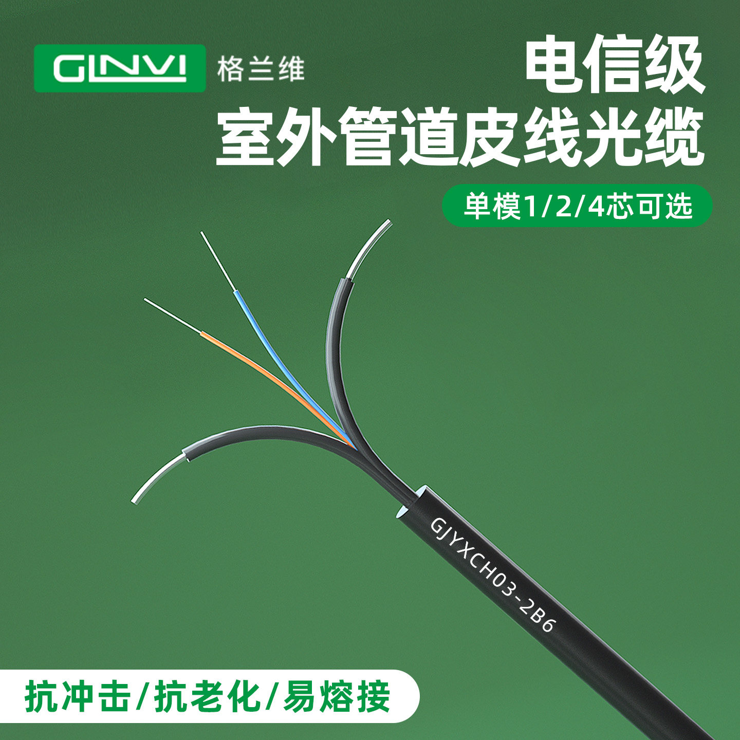 格兰维 管道式皮线光缆1芯2芯4芯别墅商用桥架加强型皮线光纤电信级1000M管道光纤