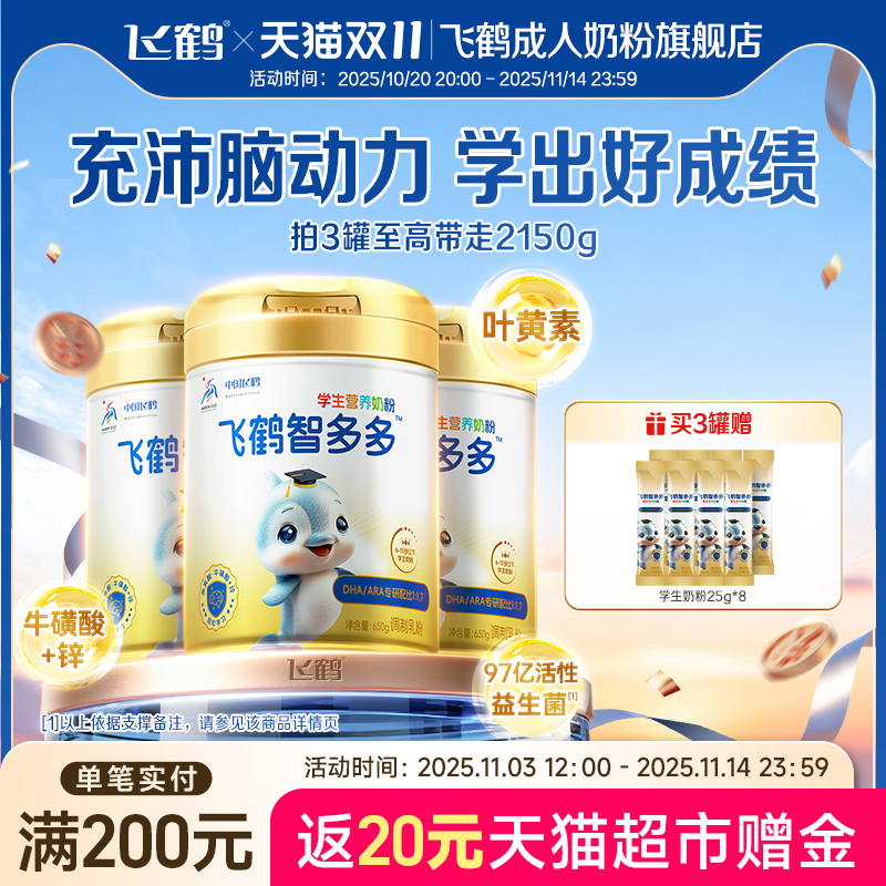 飞鹤智多多学生营养奶粉成长DHA叶黄素青少年奶粉正品官方旗舰店