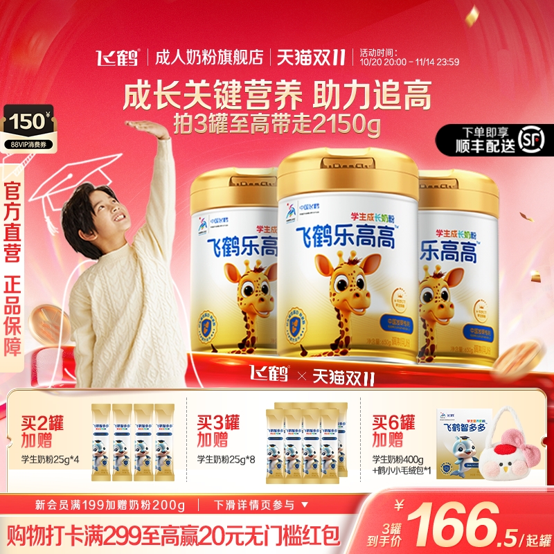 飞鹤乐高高6岁学生儿童高钙成长奶粉赖氨酸青少年奶粉旗舰店正品