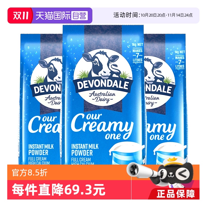 澳洲Devondale德运全脂奶粉1kg青少年进口调制乳粉成人高钙牛奶粉