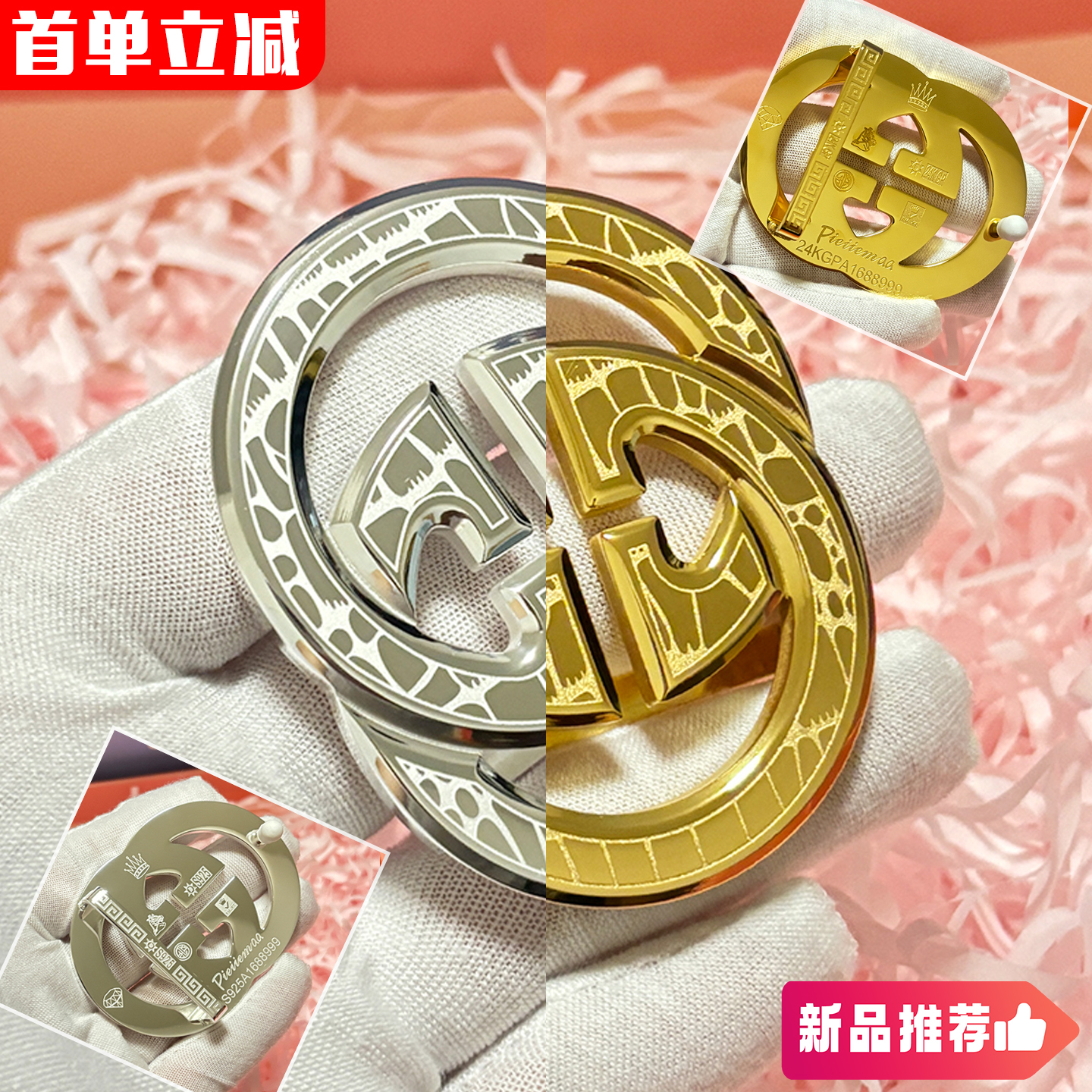 男士皮带扣头卡槽自动扣潮流平滑扣3.5cm双G卡扣裤带头腰带打孔头