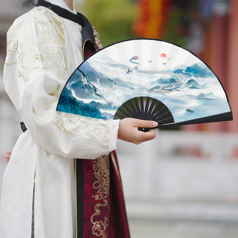 折扇中国风男扇古风复古折扇龙女扇古风折叠扇男生古装扇双面绢布