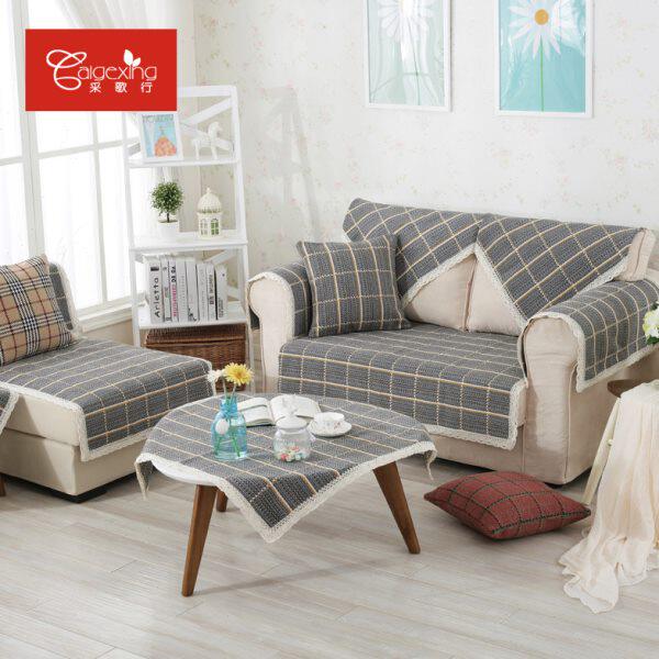 四季通用棉麻沙发垫布艺简约现代棉织老粗布防滑沙发巾千鸟防静电