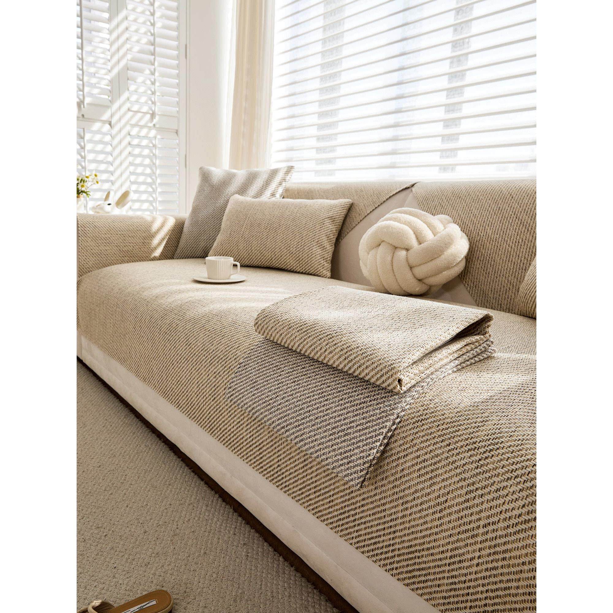双面四季通用棉麻沙发垫布艺简约现代防滑定制老粗布沙发巾防静电
