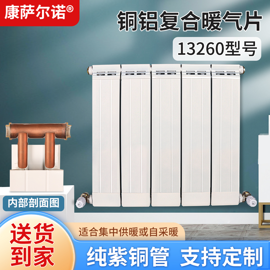 康萨尔诺铜铝复合暖气片家用水暖散热器加厚横式明装双水道取暖器