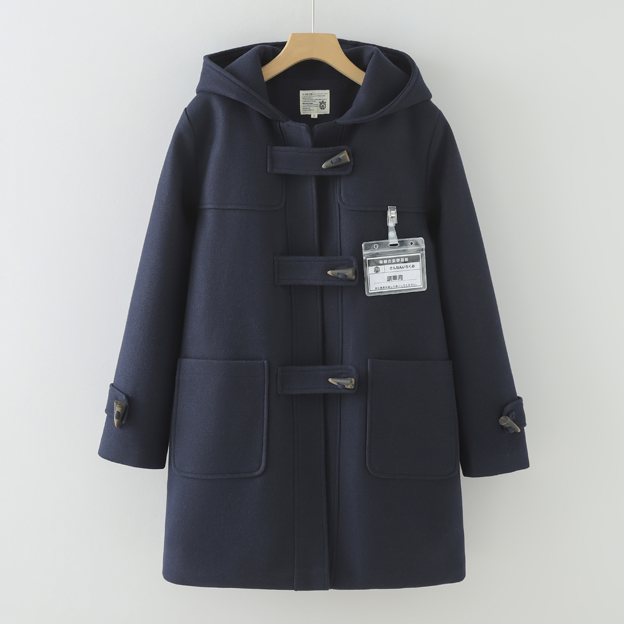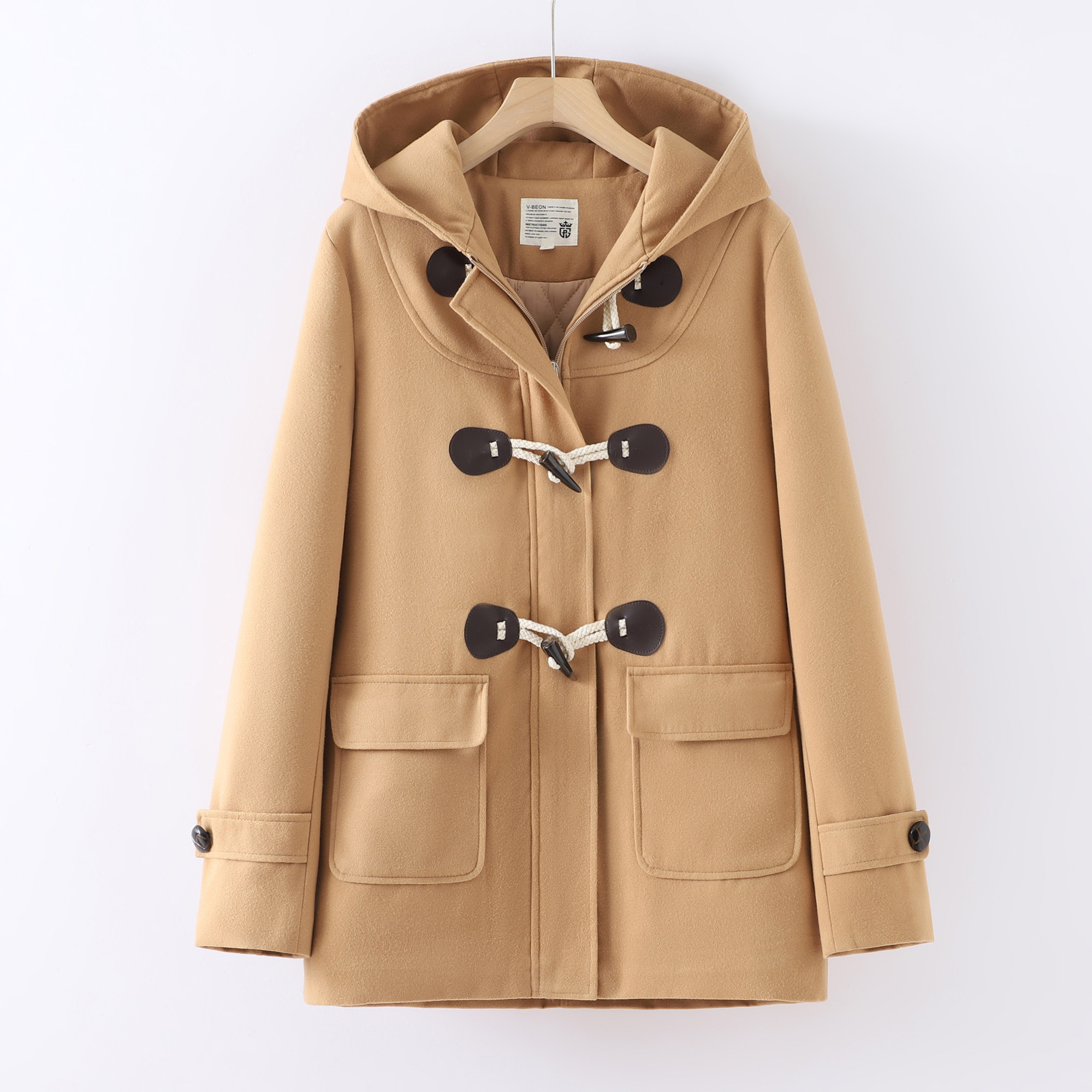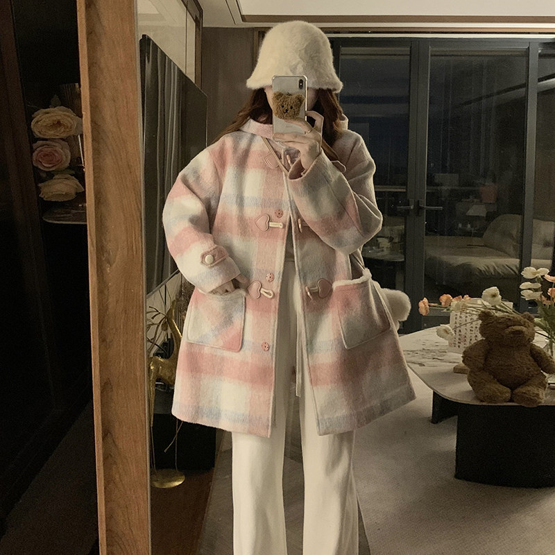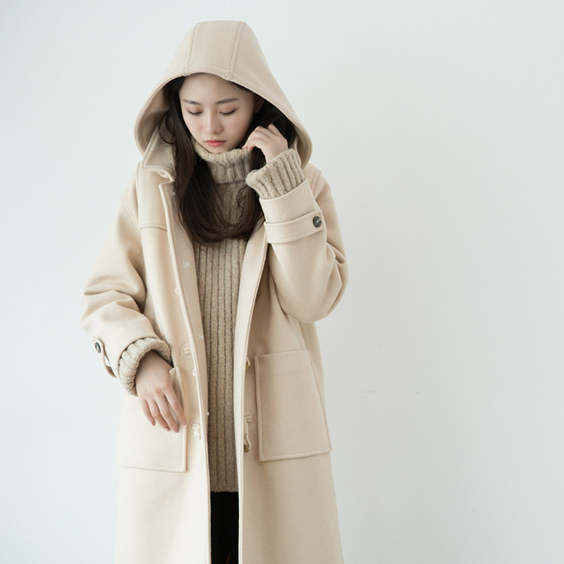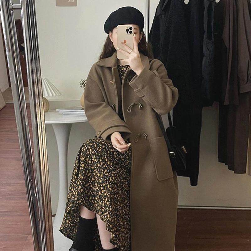 - 牛角扣毛呢外套女中长款