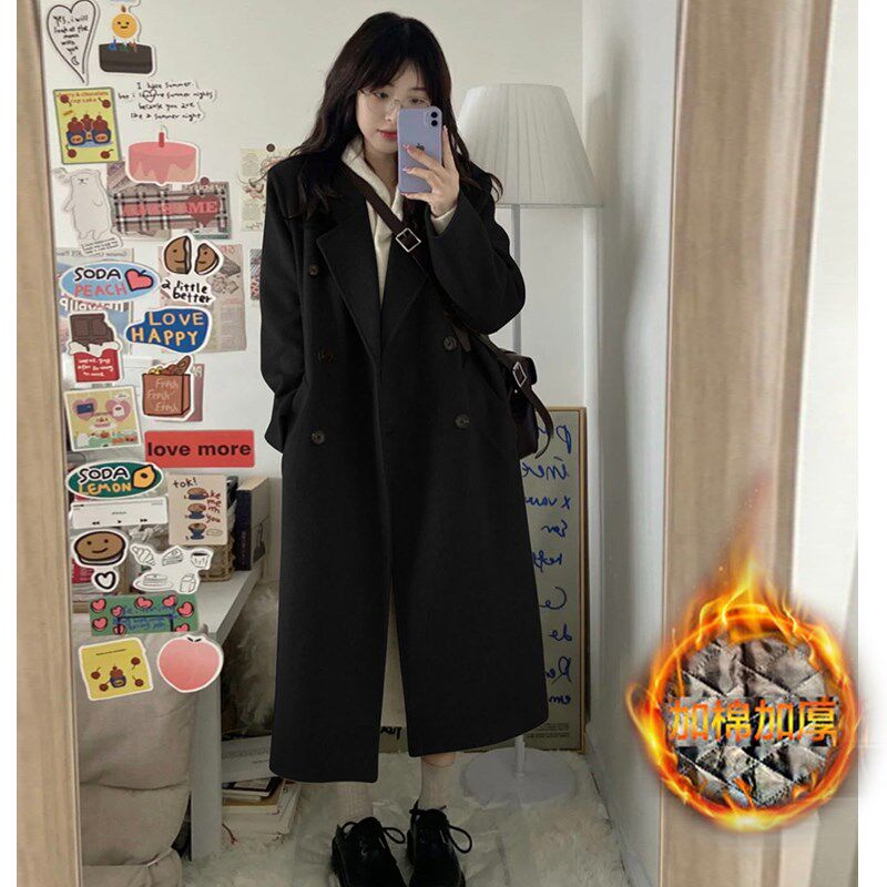 - 加棉毛呢外套女冬厚