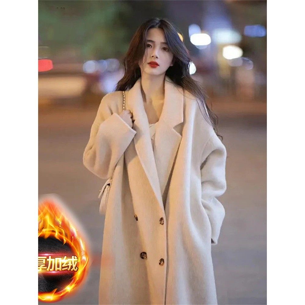 - 毛呢女大衣中长款修身加厚外套