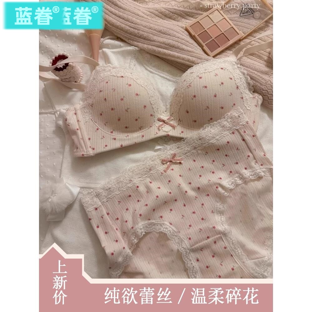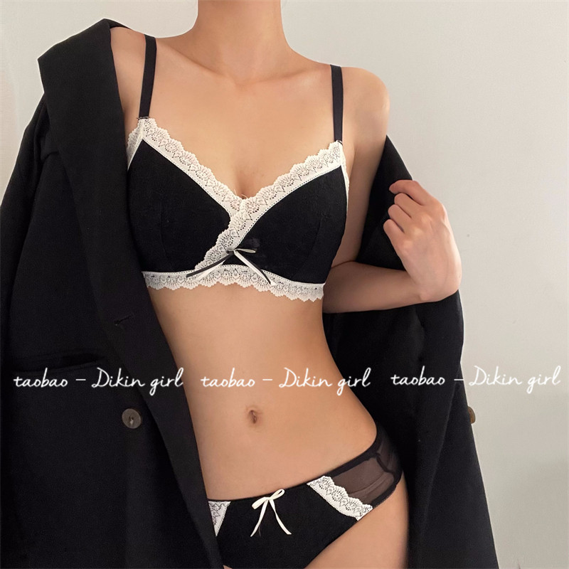 蕾丝纯欲风内衣内裤女小胸聚拢显大高中生束胸无痕无钢圈文胸套装