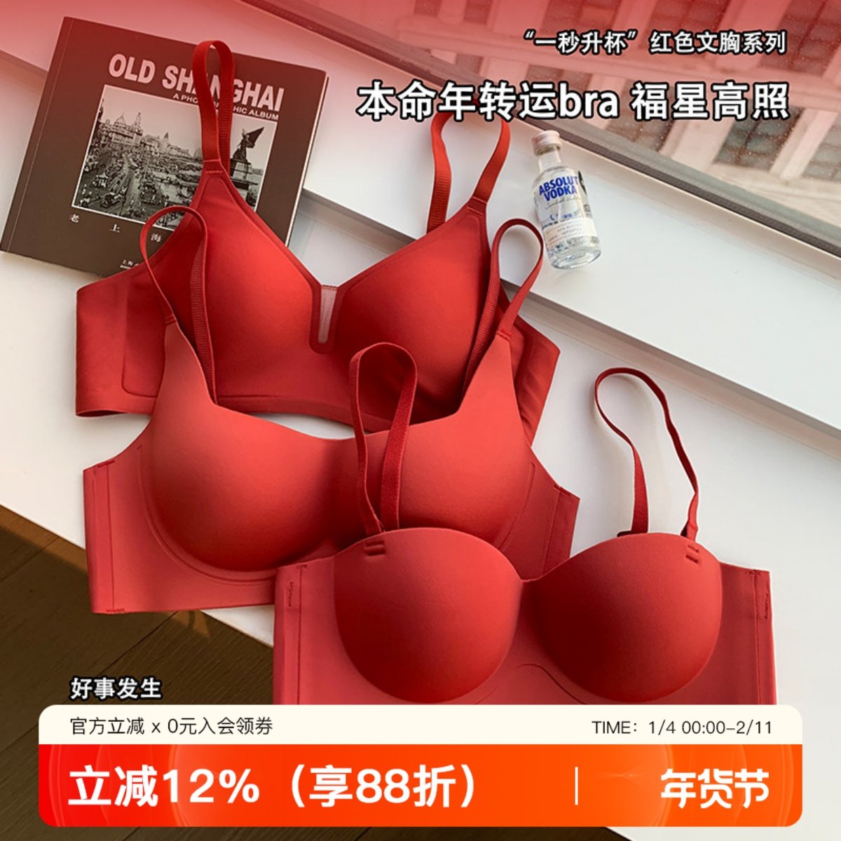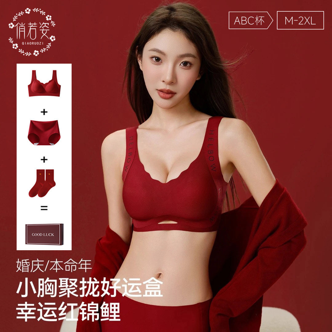红色本命年内衣女小胸聚拢收副乳防下垂无痕无钢圈文胸套装2026马