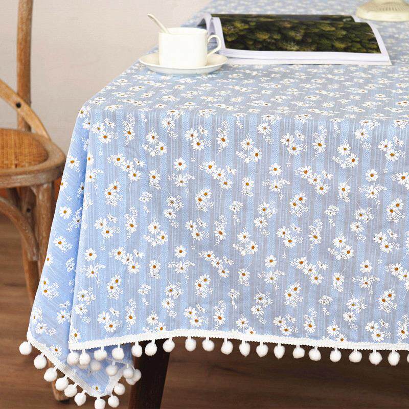 法式小雏菊蓝色桌布 田园风长方形家用定制棉麻日系小清新ins台布