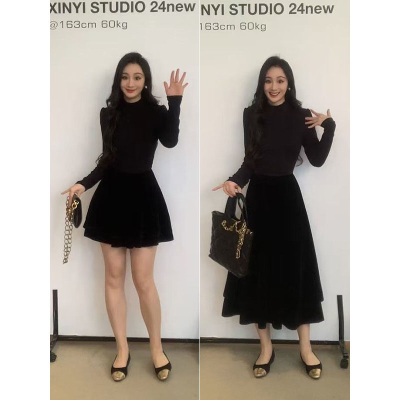 XINYI【斐丽千金】秋冬针织拼接丝绒连衣裙收腰显瘦裙X624Q20304