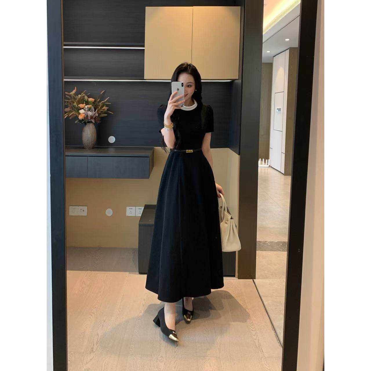 XINYI【松露黑裙】夏季高黑撞色西装连衣裙收腰显瘦裙X625Q09388