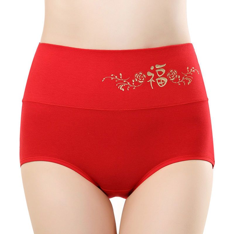 本命年高腰纯棉结婚女士内裤红色属蛇透气胖mm收腹中年妈妈三角裤