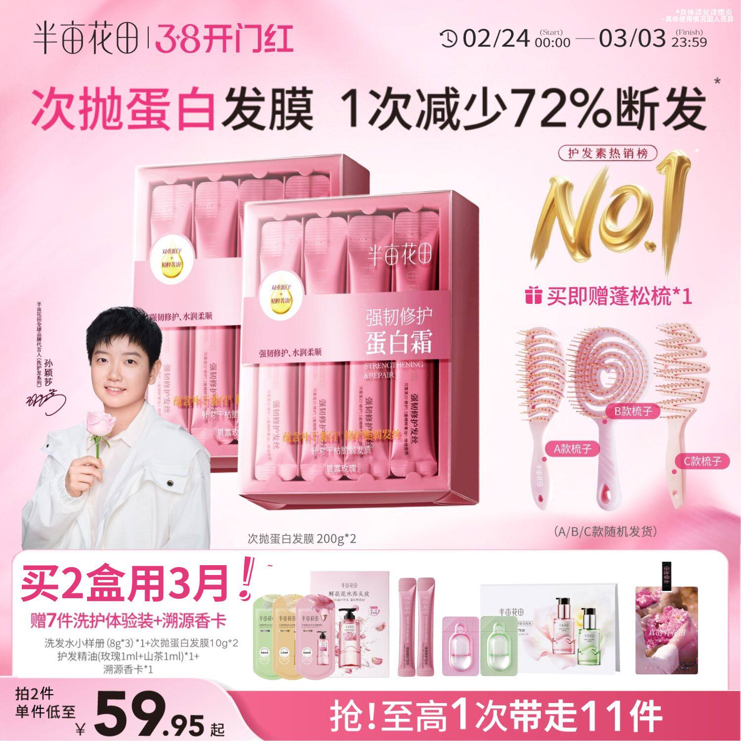 【38开门红】半亩花田发膜蛋白霜强韧修护毛躁干枯减断发护发素