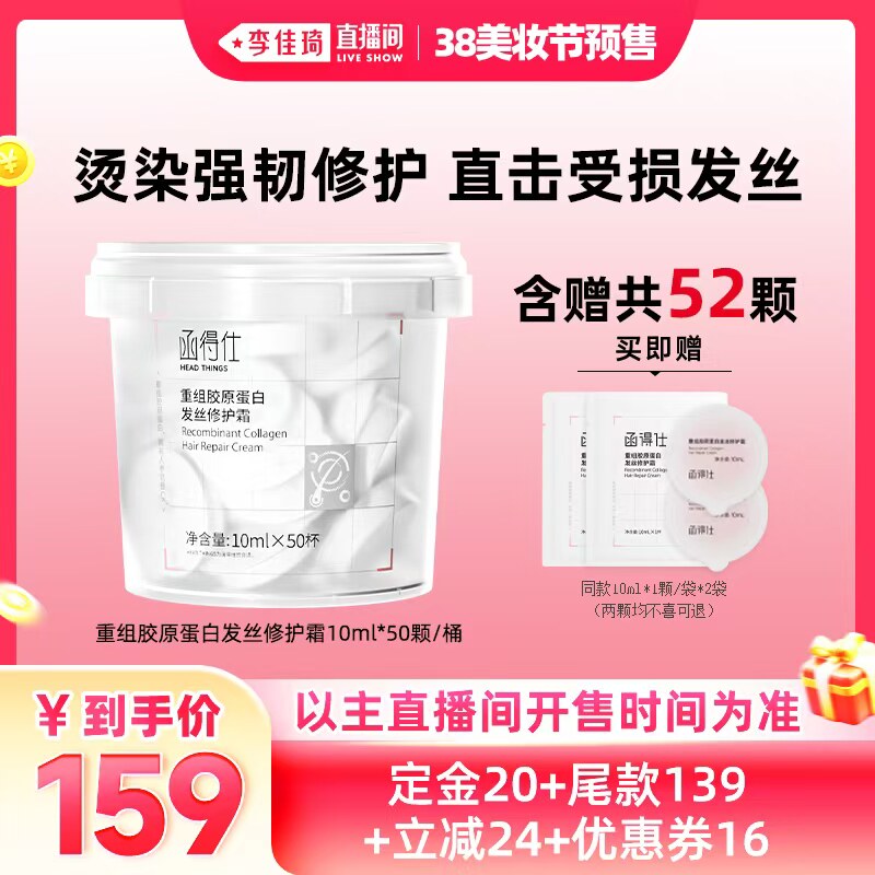 【李佳琦直播间美妆节付定金】函得仕胶原发膜 烫染修护非护发素