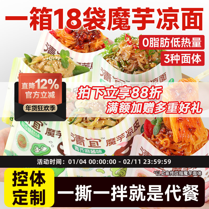 清宜魔芋凉面条皮速0食脂肪魔芋代0餐热量减低主脂肥期即食主食品
