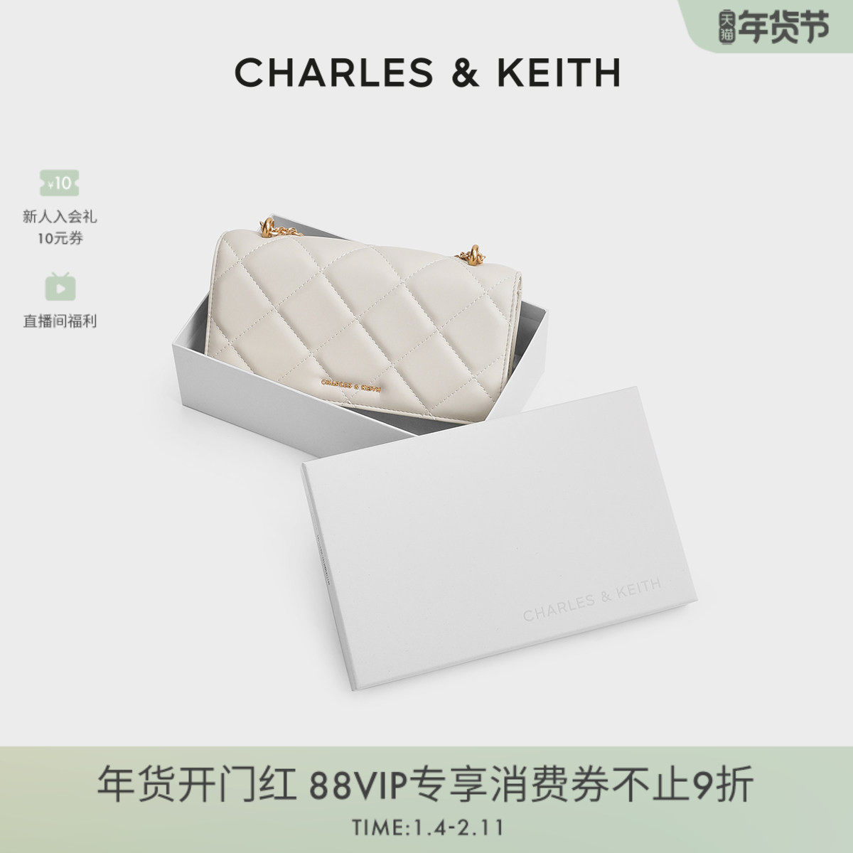 CHARLES&KEITH秋冬女包CK2-00770664迷你菱格链条小方包钱包