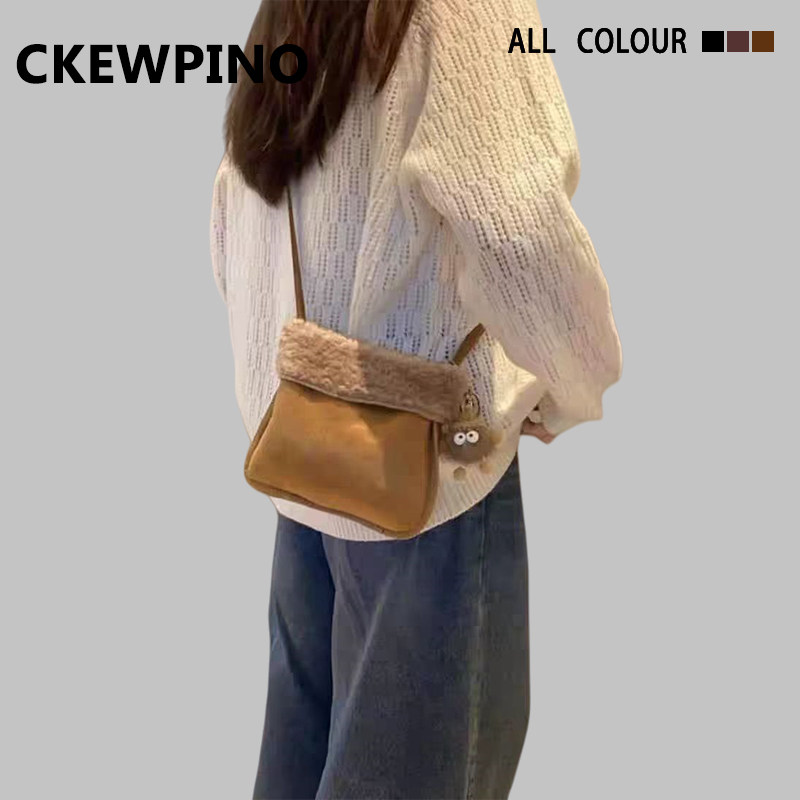 CK品牌治愈系羊羔毛拼接麂皮绒斜挎手机零钱包秋冬松弛感毛绒口袋