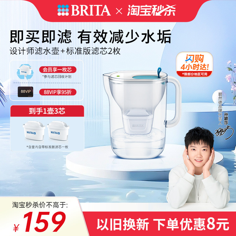 【孙颖莎推荐】BRITA碧然德净水器家用厨房滤水壶净水壶滤芯正品