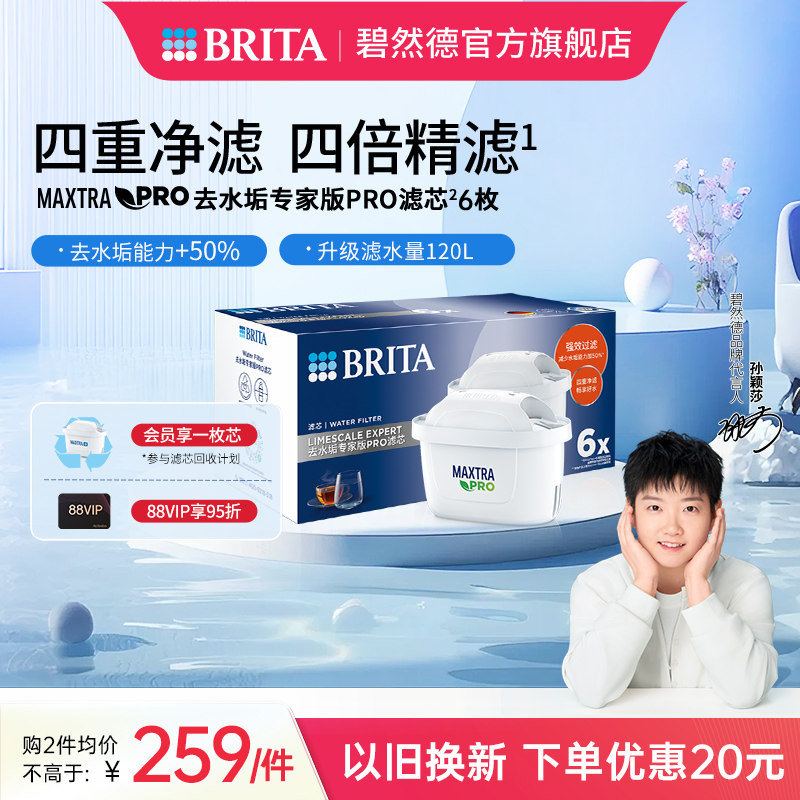 BRITA碧然德过滤净水器家用厨房滤水壶去水垢专家版PRO滤芯6枚