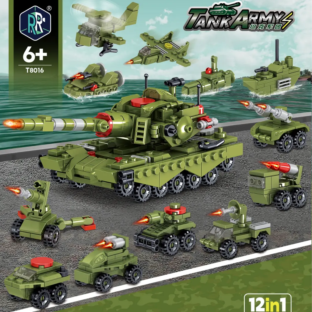 拼装坦克军团拼装积木12合1益智拼插玩具拼插拼图孩子礼物小积木