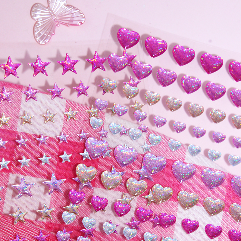 少女心可爱闪亮镭射手机装饰手账3d立体爱心星星水晶日记贴纸贴画