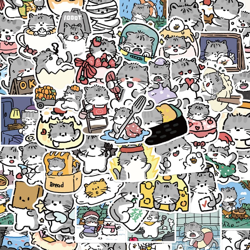 120张卡通小猫日记贴纸可爱小动物手机壳手账本装饰贴画防水自粘